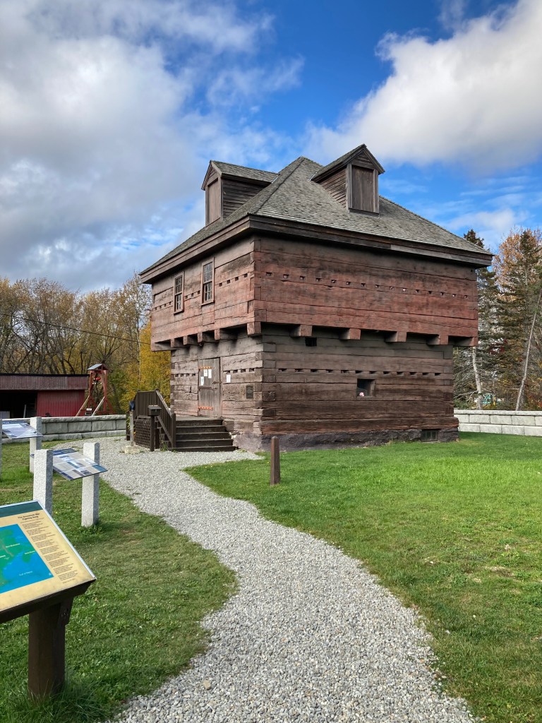 Fort Kent is home to the start of US Route 1 and the original Fort Kent block house, a relic of the Maine border war with England. Also the First Mile Brewing Co, not open at Noon, and Rock’s Family Diner, which happily was. I had an old school cheeseburger with a hand made patty, and fries, for lunch. A quick walk across the street to the Mile One marker and then off to Fort Kent block house for five minutes. Off to Madawaska and the North East corner of Maine and the United States!