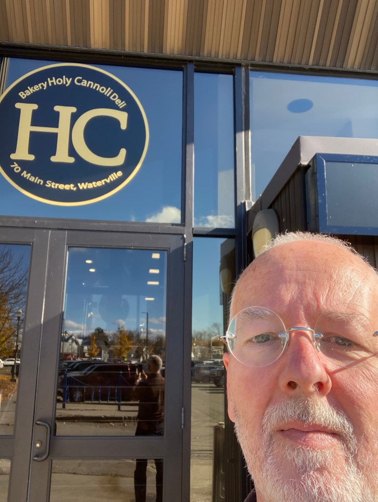 Taking Bangor as the first song-city to check off the list. The actual first song-city stop was Waterville. I’d never been to Holy Cannoli, so stopped there to buy a gift for tonight’s hosts. Delicious. I do think I need to work on my squint/smile if I’m planning to take more photos.