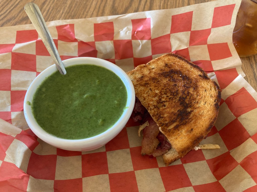I had lunch at Smoke on the Water in Charlevoix. That’s spinach soup. And a reuben.