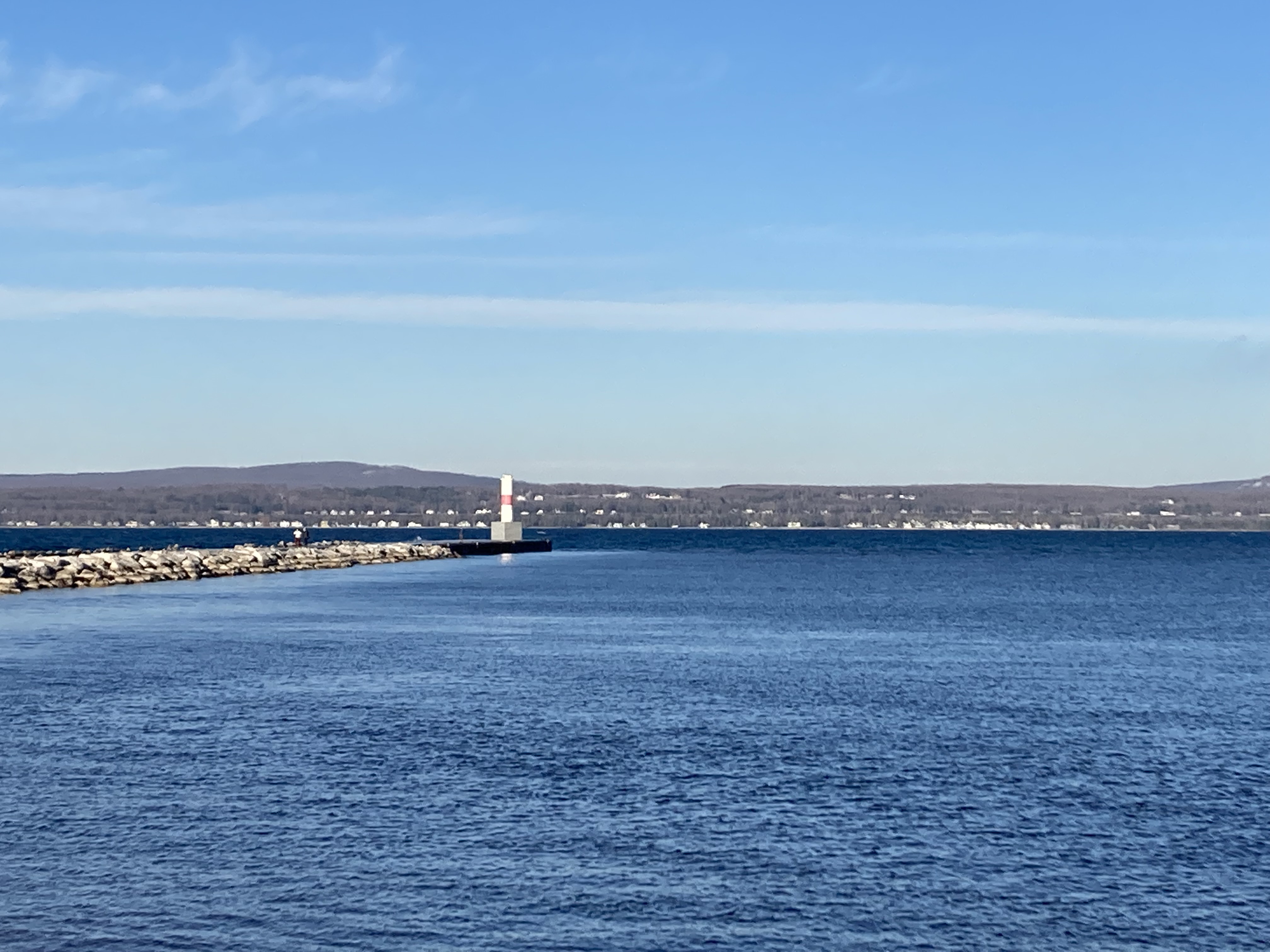After Cadillac I swung northwest and hit Traverse City (thinking of Jillian), and on to Charlevoix and Petoskey on Bruce’s suggestion. The whole area reminds me of Maine, including the 45th parallel. They just have way more cherry trees than we have apple trees.