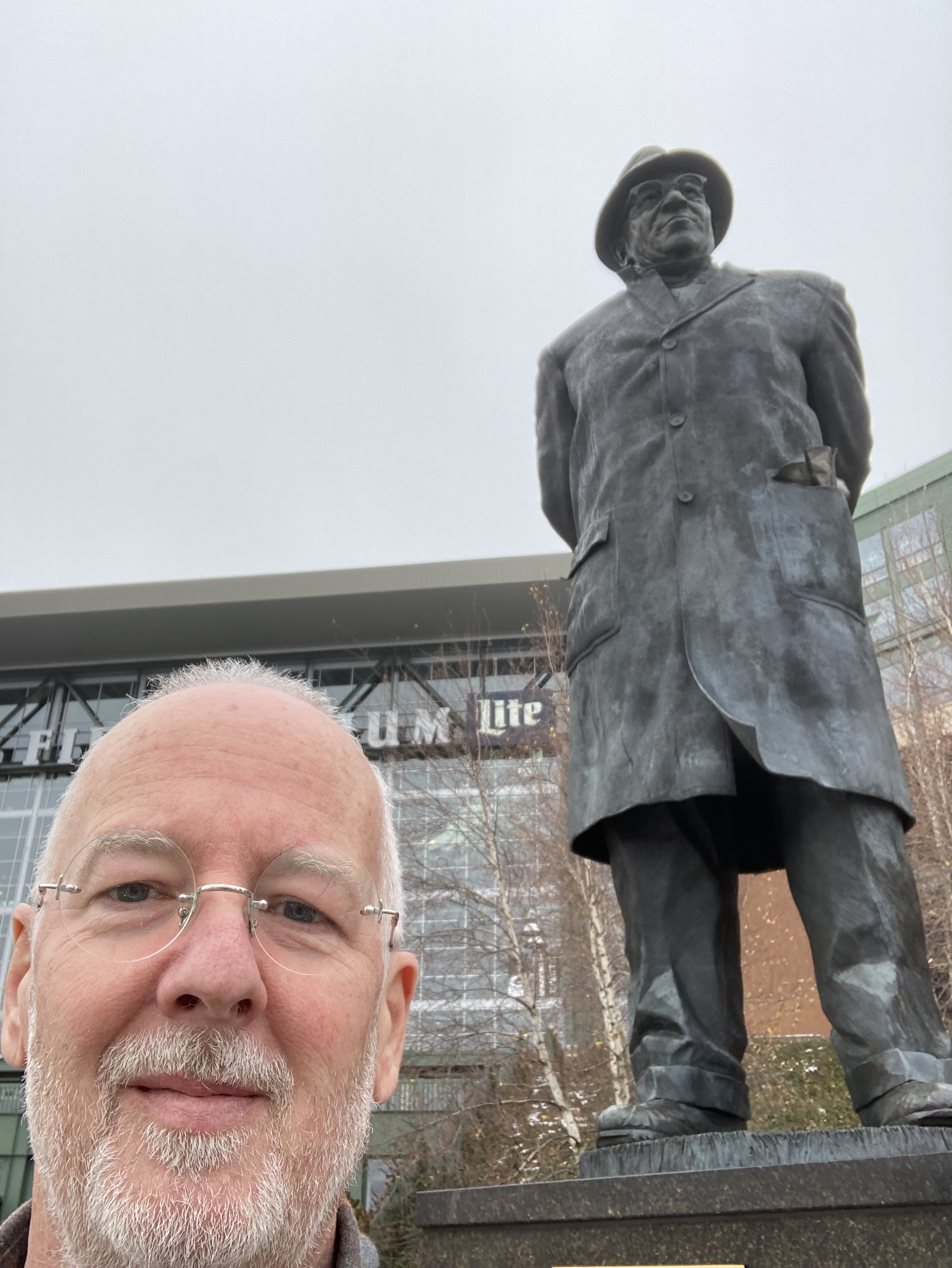 Very dense fog today from Escanaba down to Green Bay. Plus another change back to Central time. Very disruptive to my sensitive constitution. I was pleased to be able to send Roger and Mike pictures from Lambeau Field. Also for Barb, who seems not to believe I have been places unless my face is in the photo.