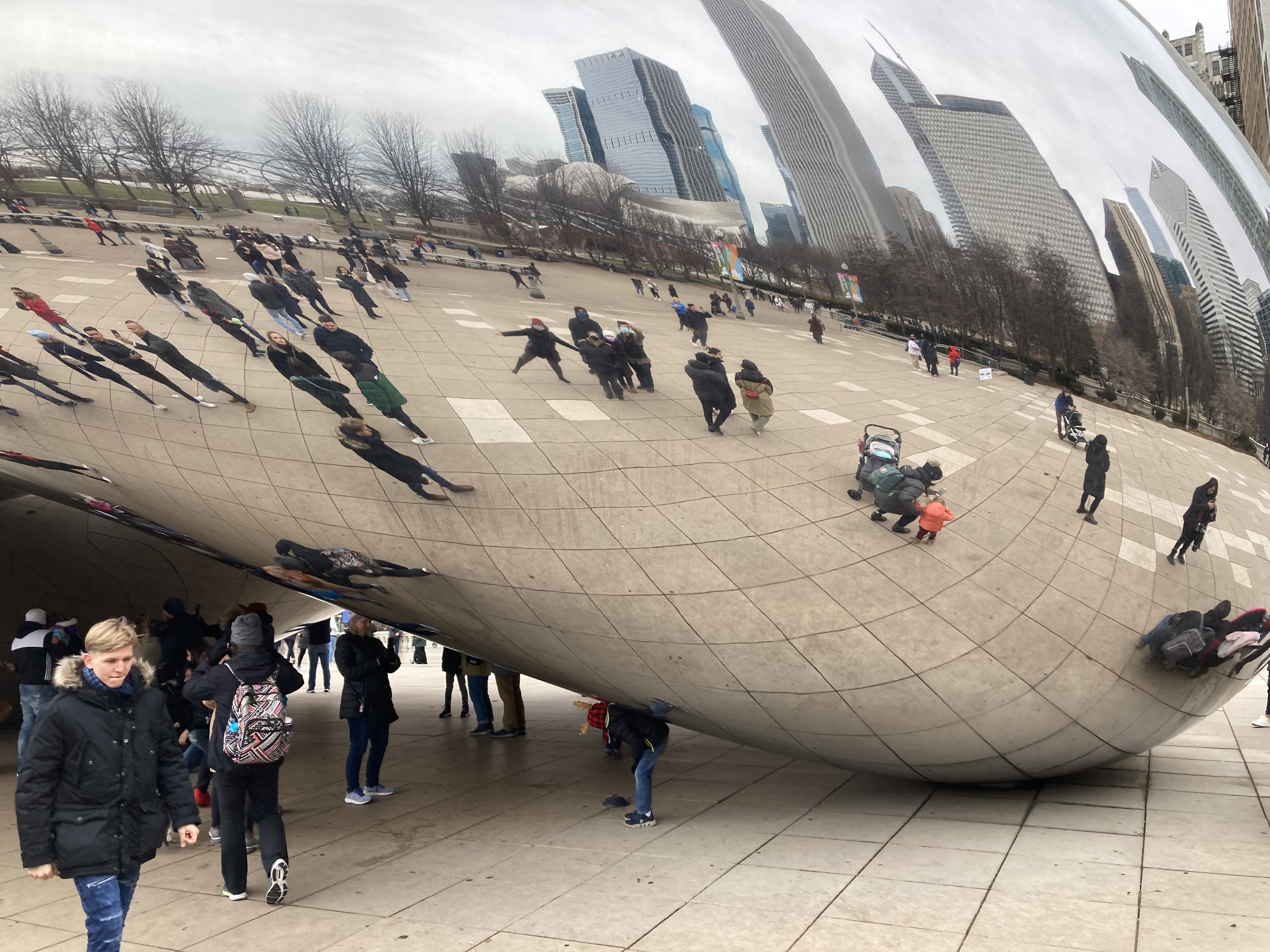 There are a few unreported items from Chicago. We did get to meet up with Sam and Nydia downtown, but due to Omicron concerns it was a much more restrained visit than originally planned. We did all get to the Bean. First pic is from afar (we are in the reflection), second is getting ready to go under (see one of us with outstretched arms), and the third is looking straight up from the center (Brittany’s white hat is center left).