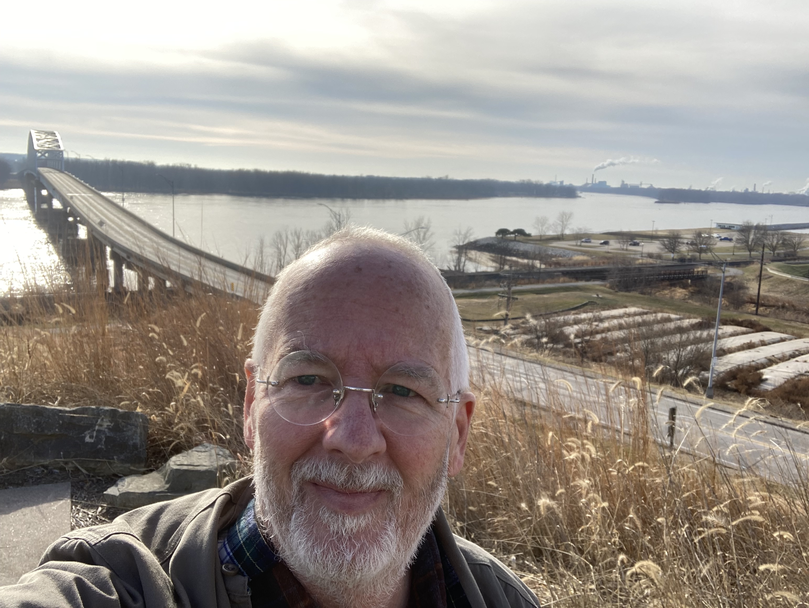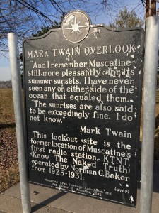 In Fulton I switched to the Great River Road, a US Scenic Byway. I plan to mostly follow this route all the way to Memphis, but stopped today in Davenport to check that city off the list. I left Davenport on the Great River Road and crossed back into Illinois at Muscatine. Stopped at the Mark Twain Overlook where I saw this plaque and the view.