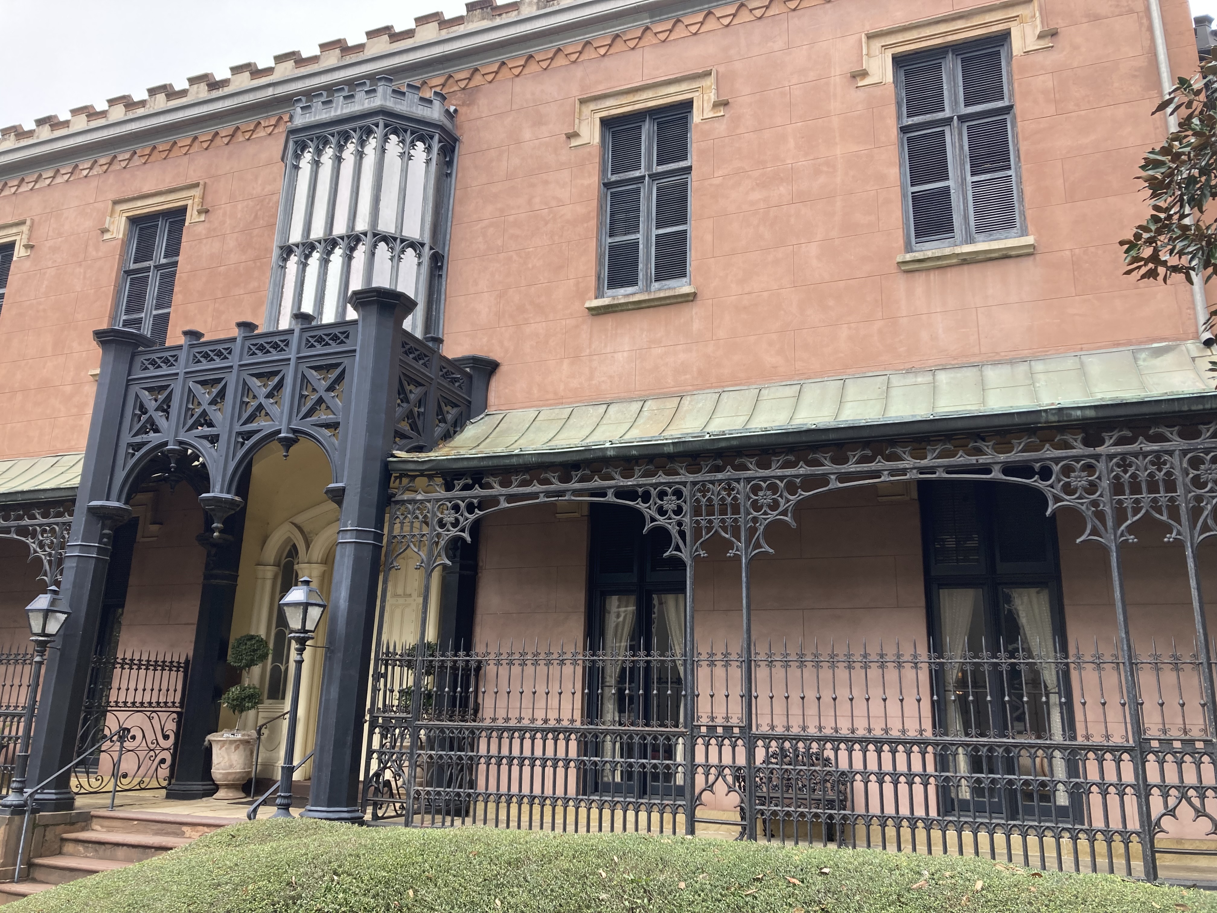 Sisters of the New South – Smothered shrimp with mac ‘n’ cheese, red rice, and greens. Gotta have a bridge picture. And one of a hundred architectural styles seen on Savannah streets.