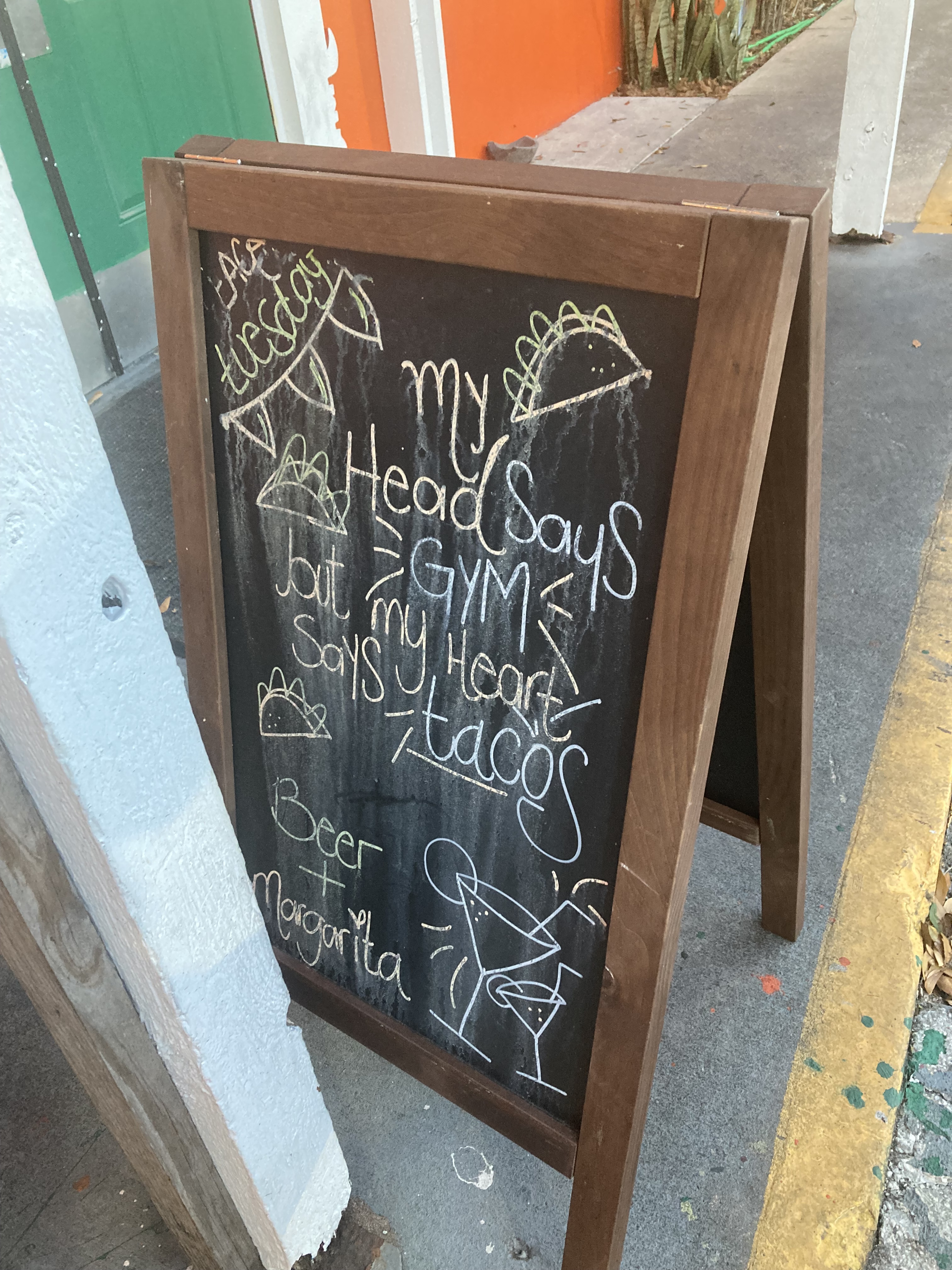 Just in the category of, “The things you see…” Taco’s over the gym in Altamonte Springs, and a pet pig at the RV show in Tampa?