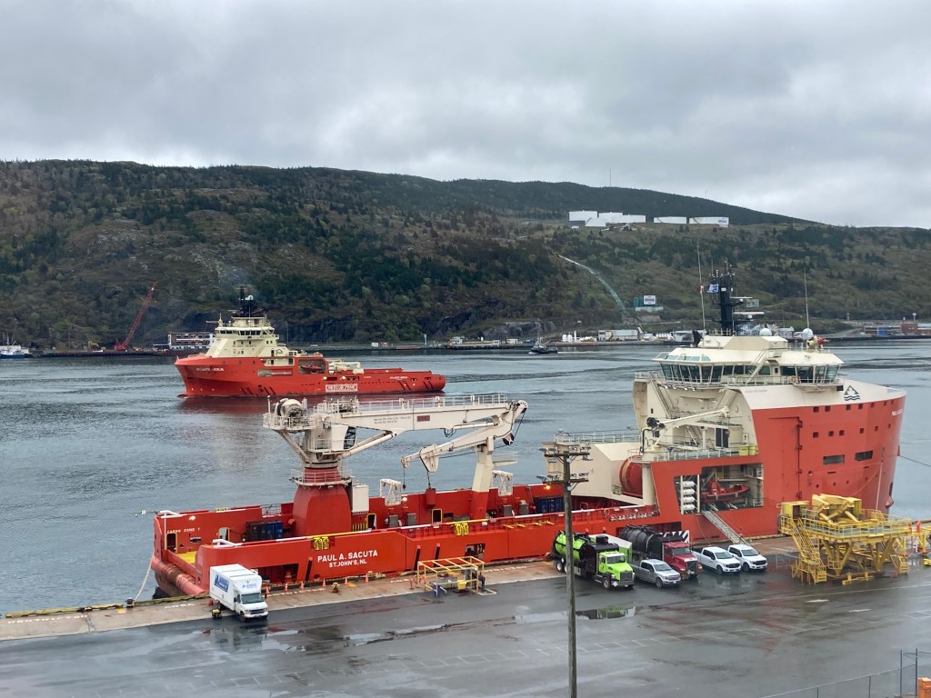 I hadn’t realized the volume, or the specialization of ships using the St. John’s Harbor. Apparently they all serve the off-shore oil rigs and each one has a specialty. I learned that at the geology museum.
