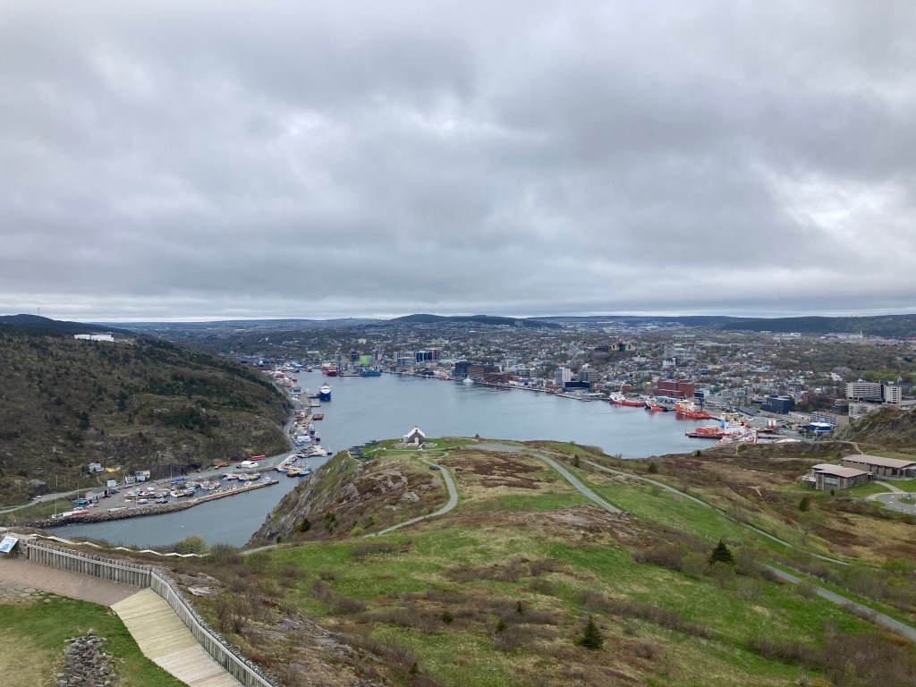 A four hour drive brought me to St. John’s, Newfoundland, one of the most sheltered ports in the world. Below is a photo of the harbor from the top of Signal Hill.