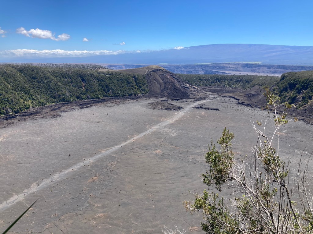 The point is that June 20th is Litha, or the solstice. The longest day of the year, and traditionally celebrated with a bonfire. The neo-pagans are always wanting a fire. I can’t build a bonfire in downtown Honolulu. But three friends and I went to the Big Island of Hawai’i and hiked the Kilauea volcano crater. Amazing terrain from barren lava fields to older dense forests outside the crater. That’s another view at the top of the page.