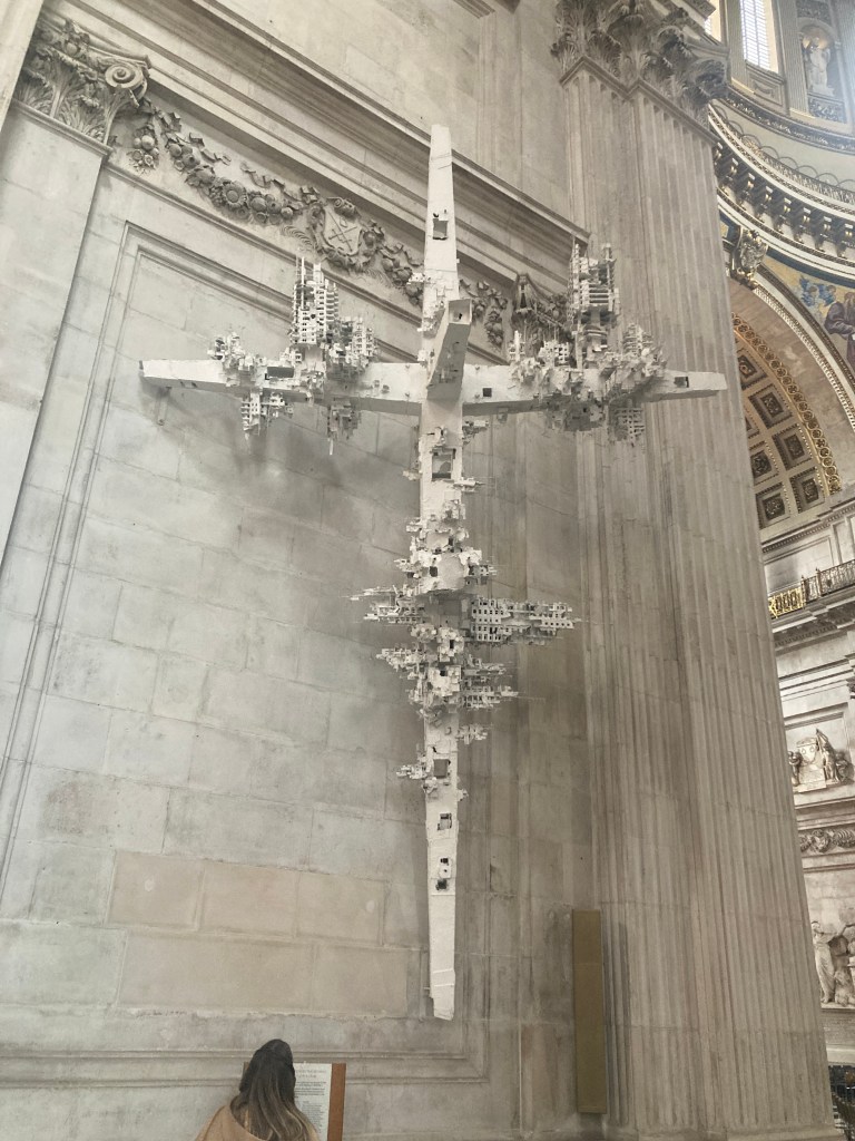 Yes, another church. This is St. Paul’s Cathedral in London. Designed by Sir Christopher Wren to replace the structure lost in the Great Fire of 1666, which followed the Great Plague of 1665-1666. I highly recommend the guided Cathedral Floor and Crypt tour which is 60-90 minutes long. There is so much history here that is not immediately obvious on one’s own. I found it especially interesting to see how Wren’s grand but austere design has been continually embellished by those wanting more guilding and color in the church.