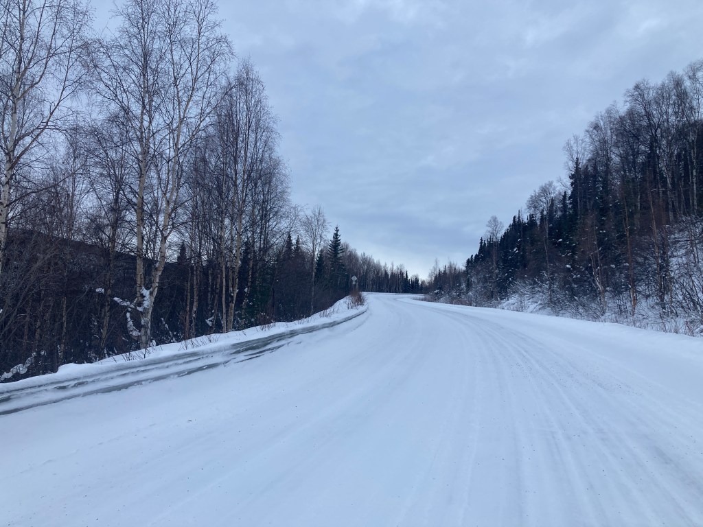 There isn’t much to see in winter in Chatanika. But it is one of the song-cities. So check that off. 65° 6′ N. There is a road off Rte 6, but it didn’t look too traveled and I didn’t want to chance it. Maybe in the summer.