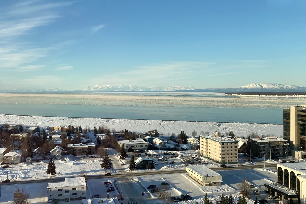 I started the day in Anchorage. That’s the view above. The photo doesn’t get the job done. Anchorage is gorgeous in the winter. And cold. But not as cold as Fairbanks.