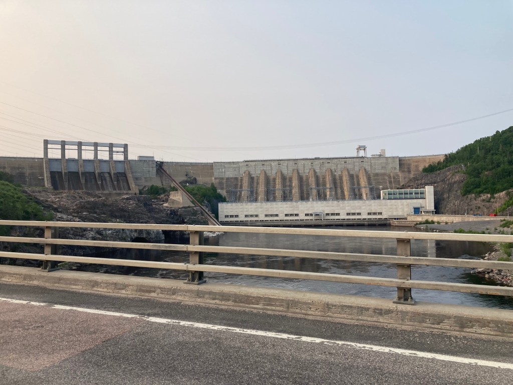 Hydro power is big here. MANIC-2 and MANIC-5 on Manicouagan River. Manic-5, at 2.2 million cubic meters of concrete is the largest dam of its type in the world. It forms a distinctive annular reservoir, filling the world’s fifth largest confirmed impact structure (meteor strike).