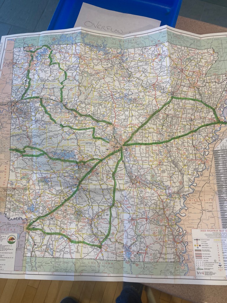 But before Hawaii, there was Arkansas. I did get to check off three song cities – Little Rock, Eldorado, and Texarkana. Also a trip East to Memphis, a trip West to Mena, and a trip Northwest, up into the Ozarks.