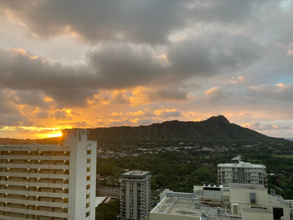 My snack doesn’t show off Diamond Head to the best. This is a much better view. Sunrise. Sorta Imbolc-ish.